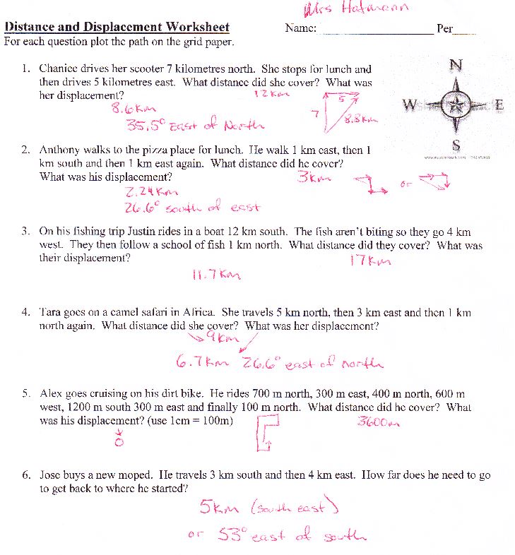 wk1 Distance and Displacement Worksheet ANSWERS
